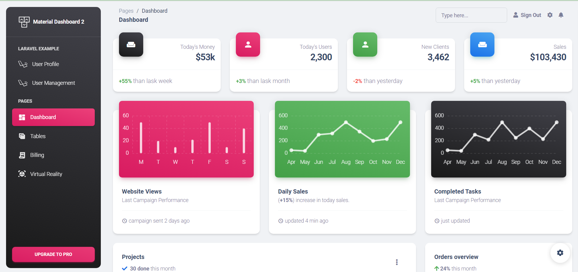 If you want to get more features, go PRO with Material Dashboard 2 PRO Laravel.