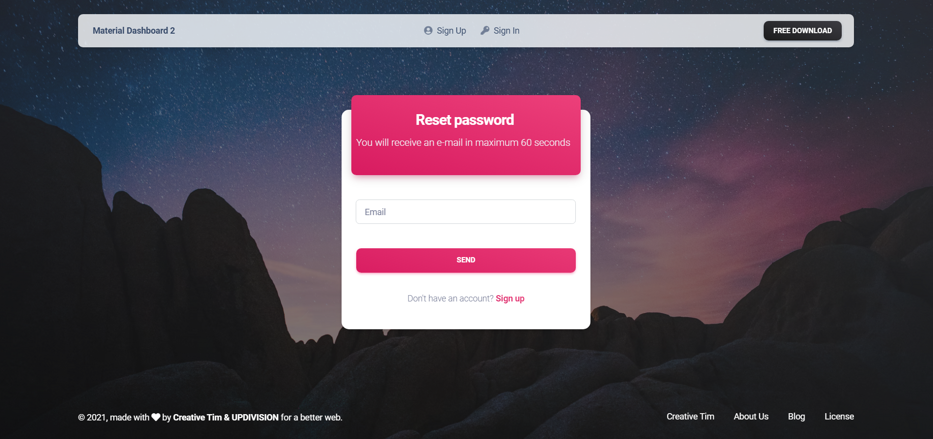 Frontend version: Material Dashboard v3.0.0. More info at https://www.creative-tim.com/product/material-dashboard