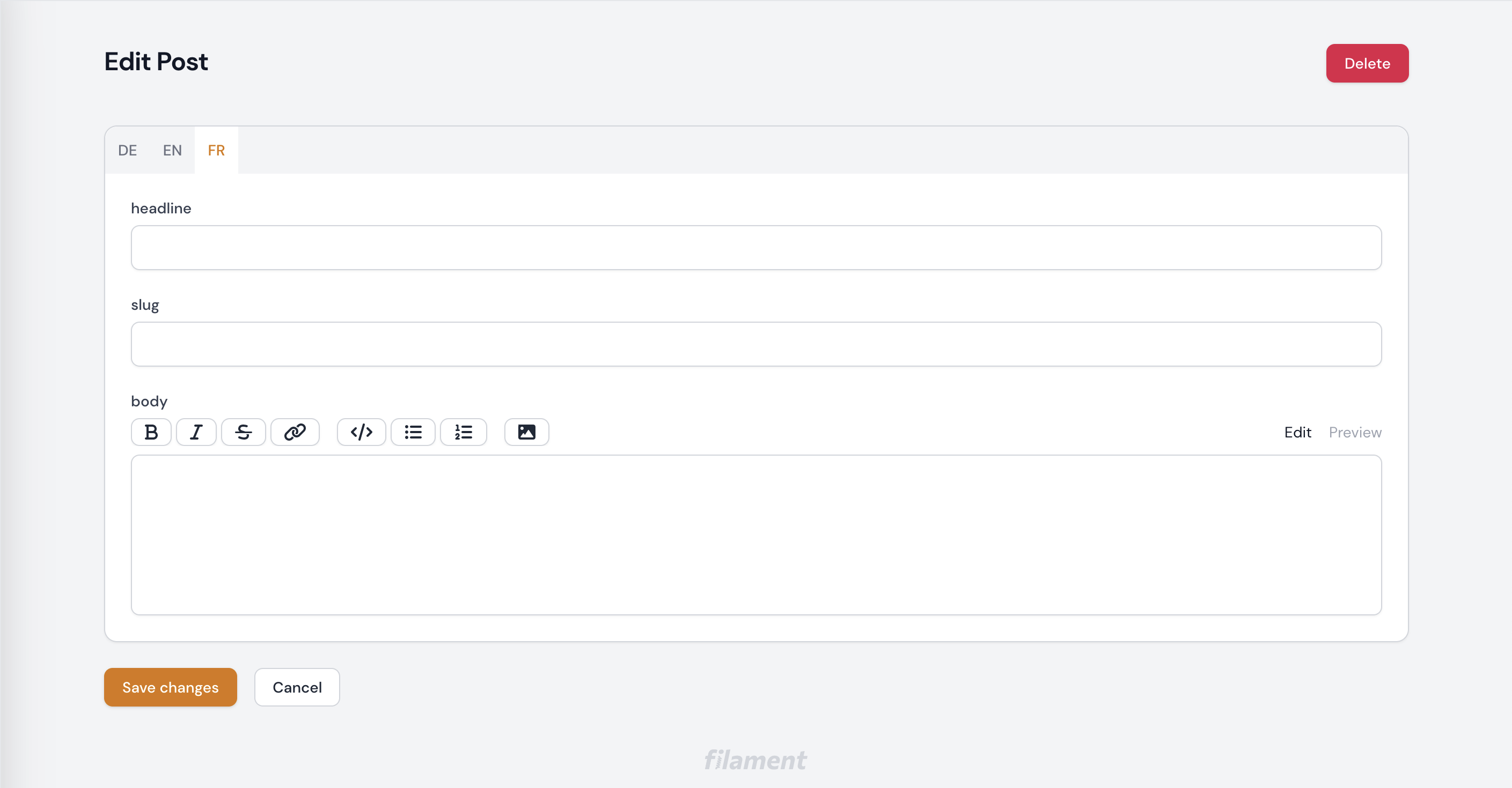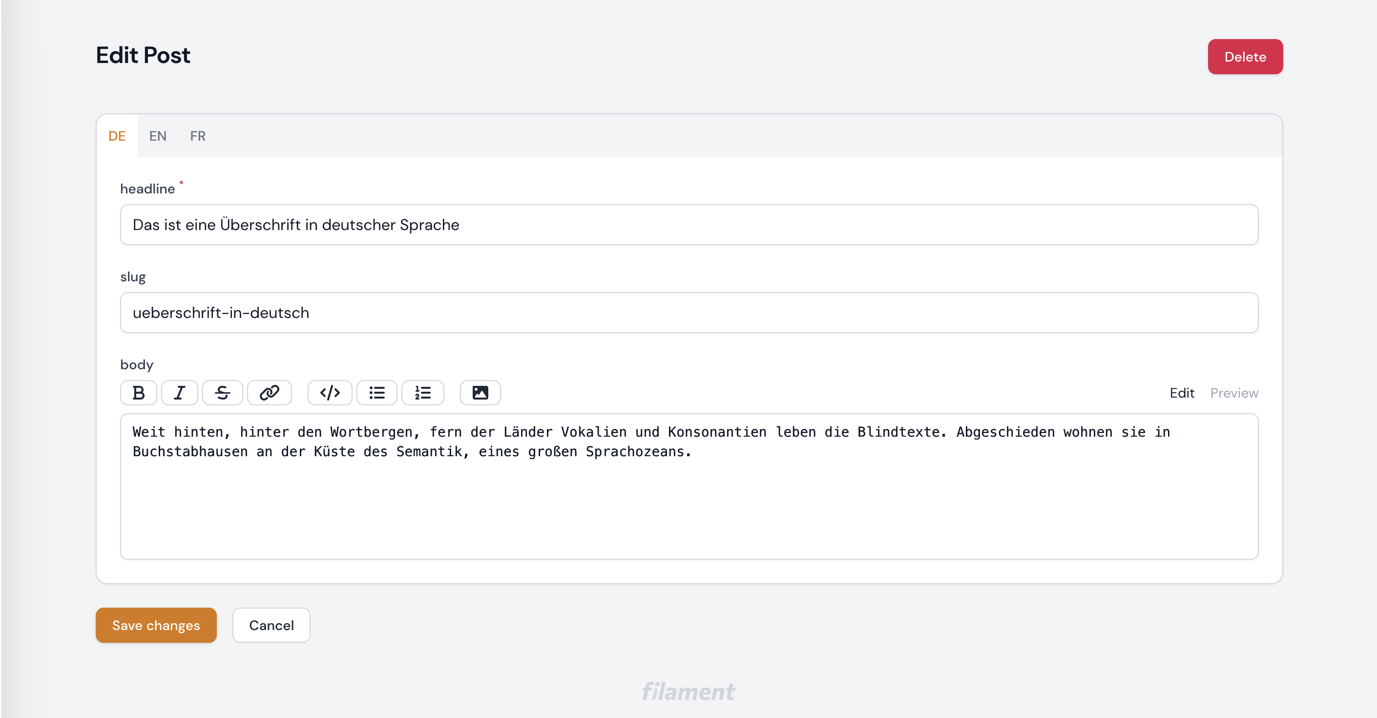 This package is a Filament plugin that allows you to group multilingual fields into tabs. It can be configured which languages are required to be filled out.