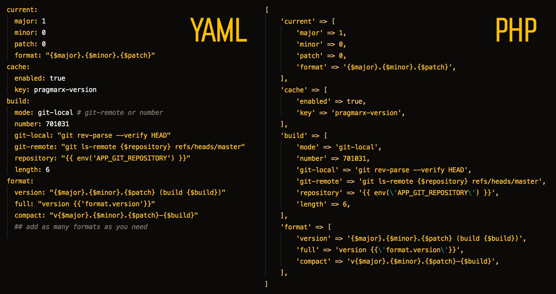 compact: "v{$major}.{$minor}.{$patch}-{$build}"