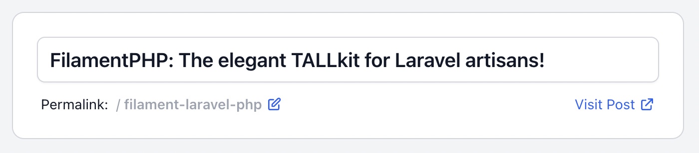 This package for FilamentPHP adds the form component TitleWithSlugInput which allows to