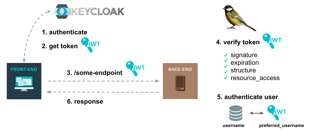 Keycloak Guard) handle it.- Verify token signature.