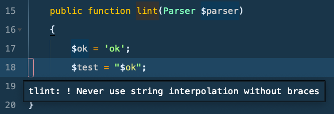 In this case TLint will warn if you are not using the B) method. This example is a sort of "meta layer" of code linting, allowing teams to avoid higher level sticking points of code review / discussions.