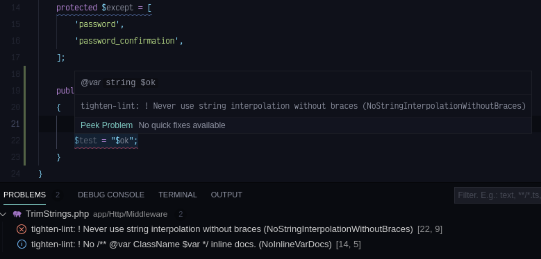 TLint Ships with 2 "preset" styles: Laravel & Tighten. The Laravel preset is intended to match the conventions agreed upon by the Laravel framework contributors, while the Tighten preset is intended to match those agreed upon by Tighten team members.